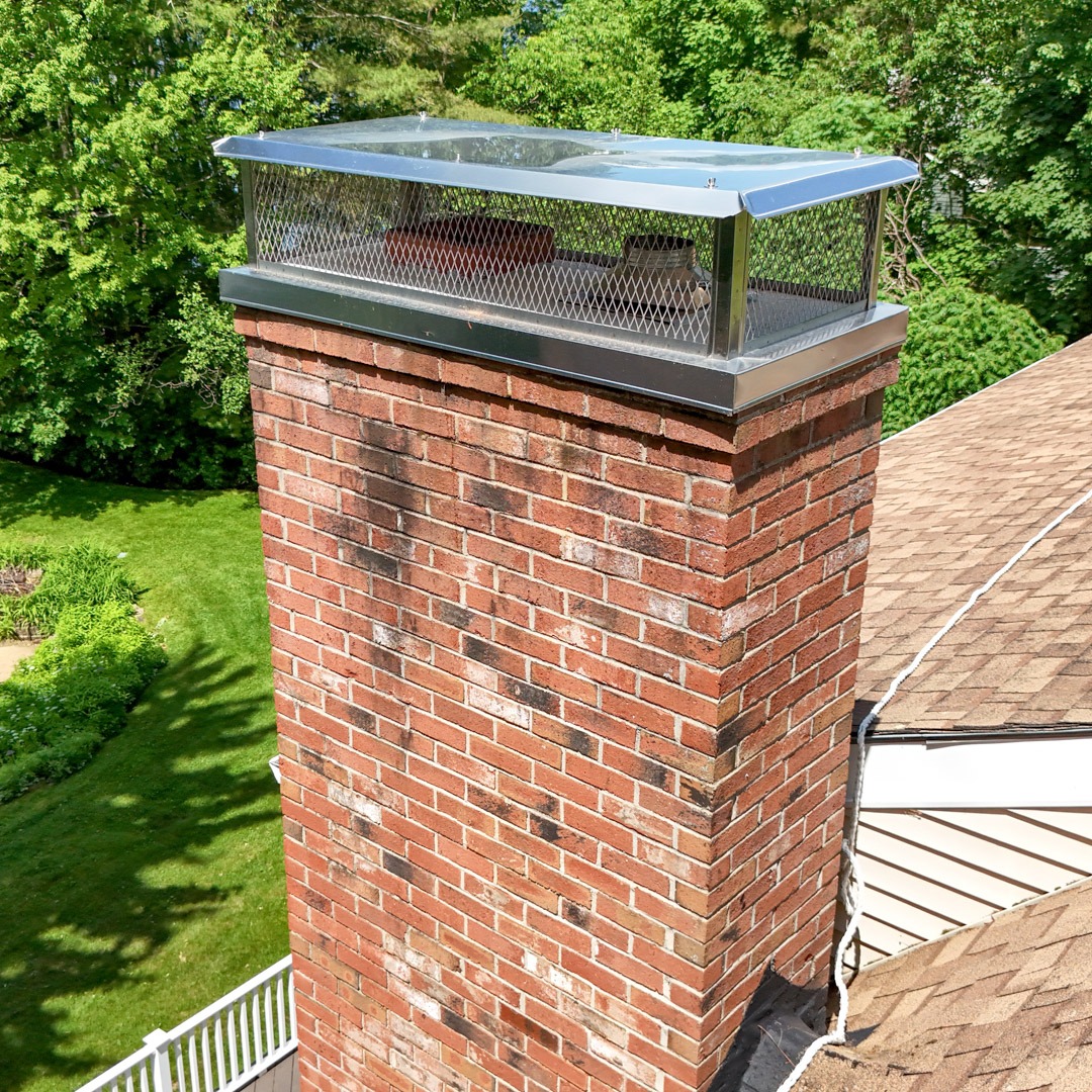A custom cap also includes a flat component that covers the chimney crown, protecting it and the interior areas of the chimney.